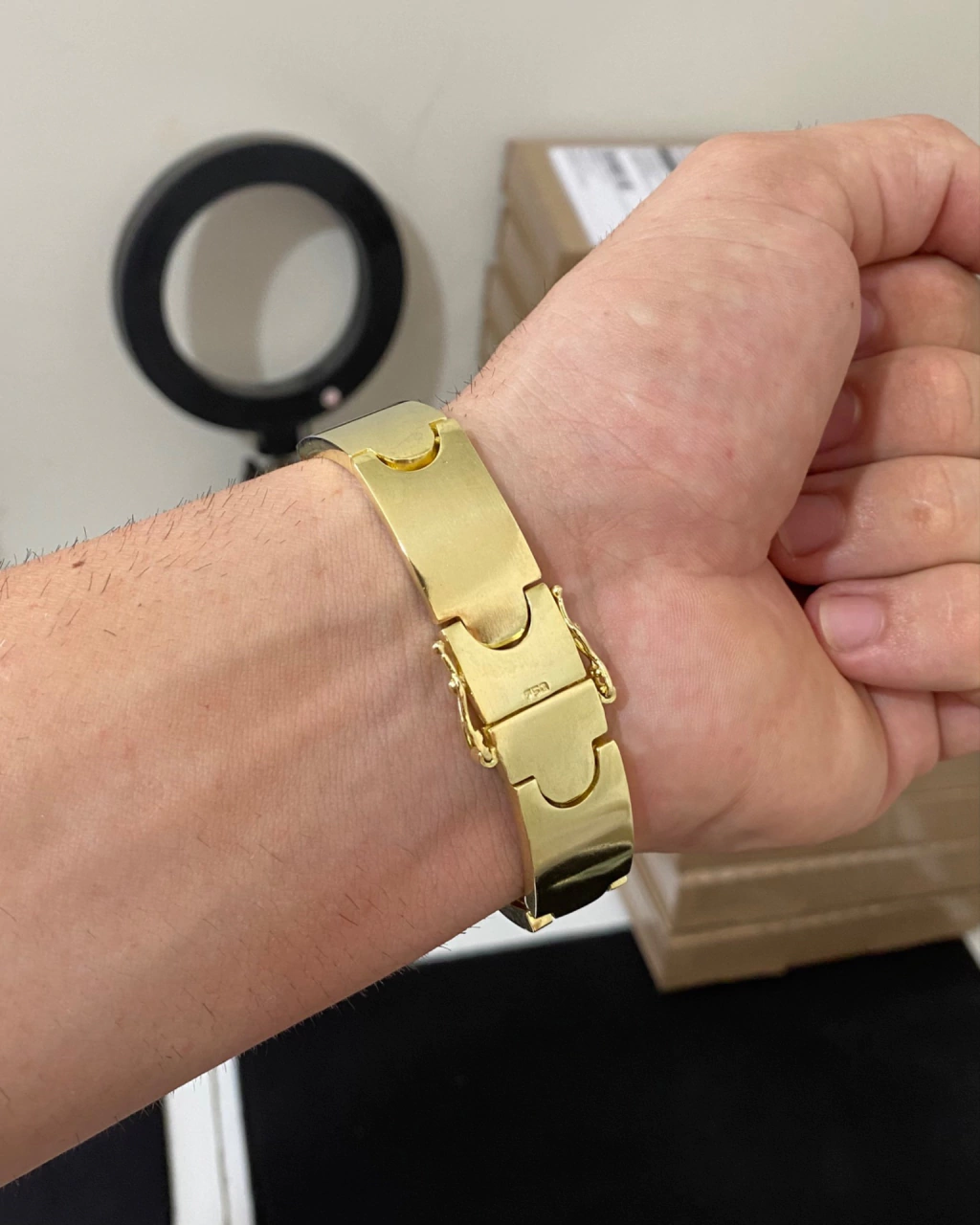 Nossas peças são feitas 100% de moeda antiga maciça, um material muito semelhante ao ouro 18K. Não mareia, não descasca, não enferruja e não perde a cor.
