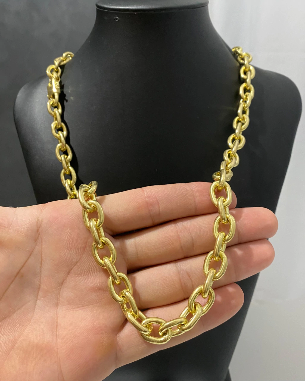 Nossas peças são feitas 100% de moeda antiga maciça, um material muito semelhante ao ouro 18K. Não mareia, não descasca, não enferruja e não perde a cor.