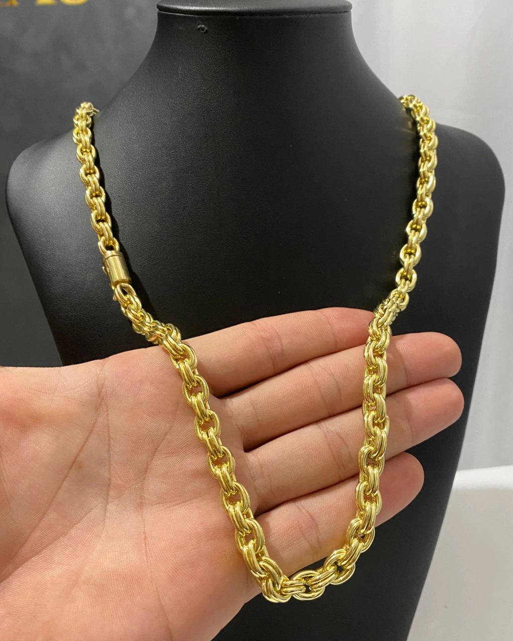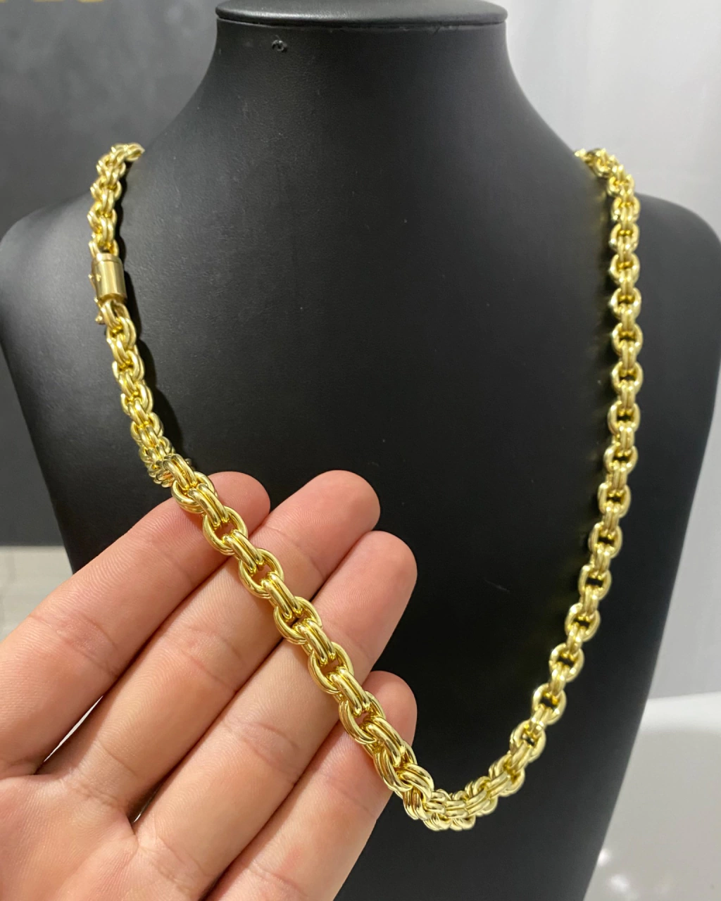 Nossas peças são feitas 100% de moeda antiga maciça, um material muito semelhante ao ouro 18K. Não mareia, não descasca, não enferruja e não perde a cor.