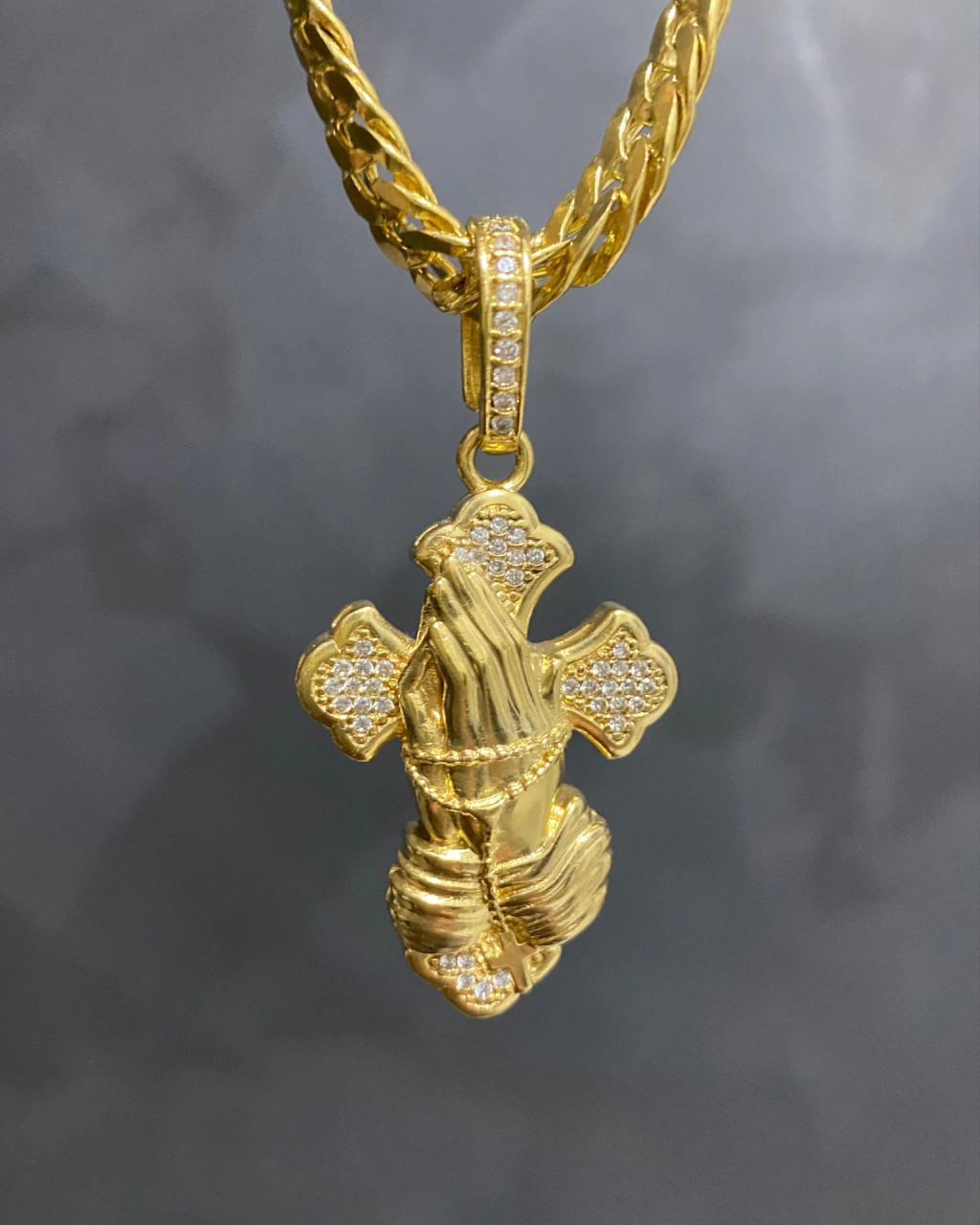Modelo: Pingente Mão Oração com Cruz Cravejada